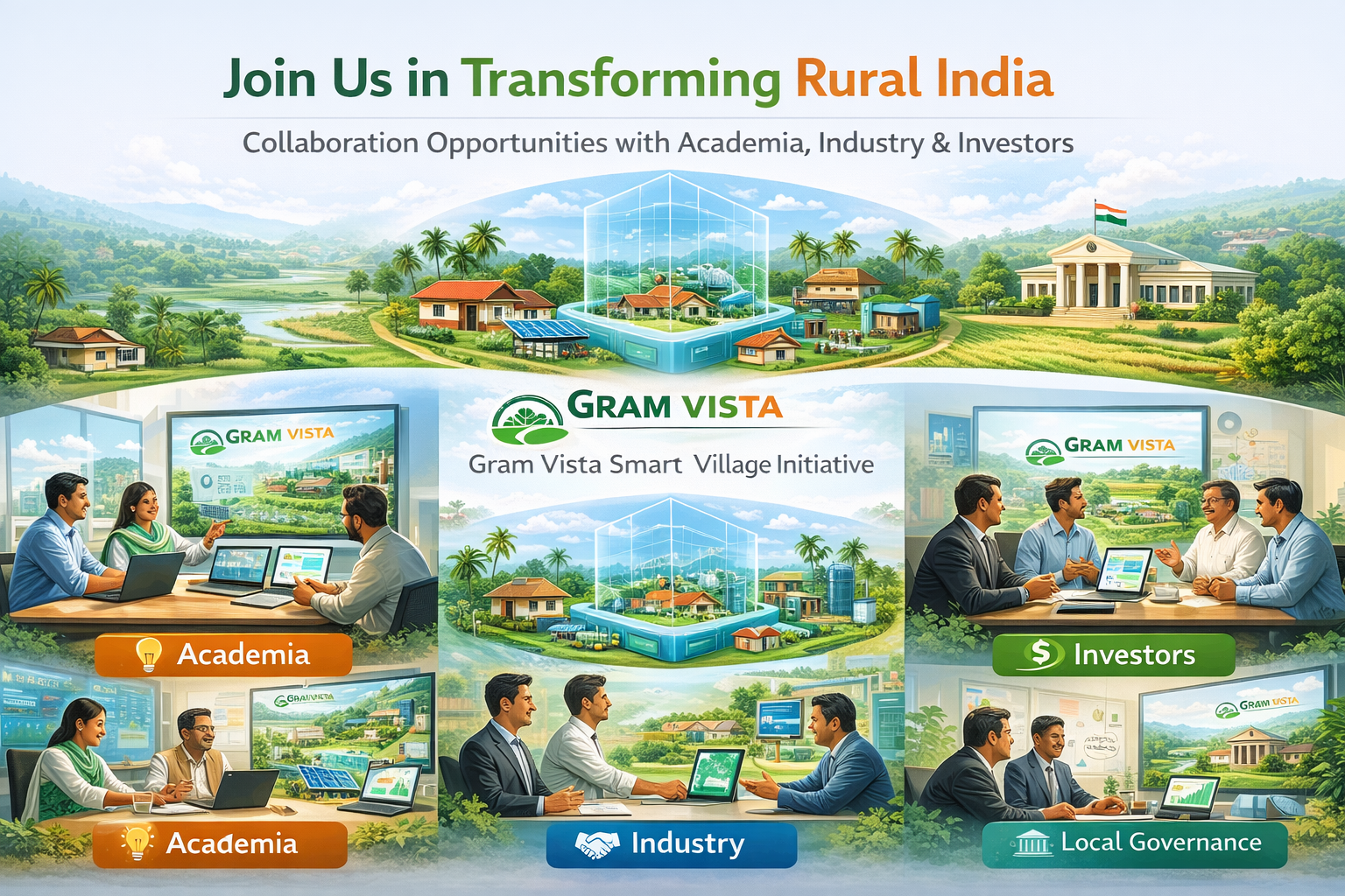 Aligned with Unnat Bharat Abhiyan and driven by the Sahrdaya community vision of education through service, Gram Vista enables sustainable rural transformation through technology, collaboration, and innovation.