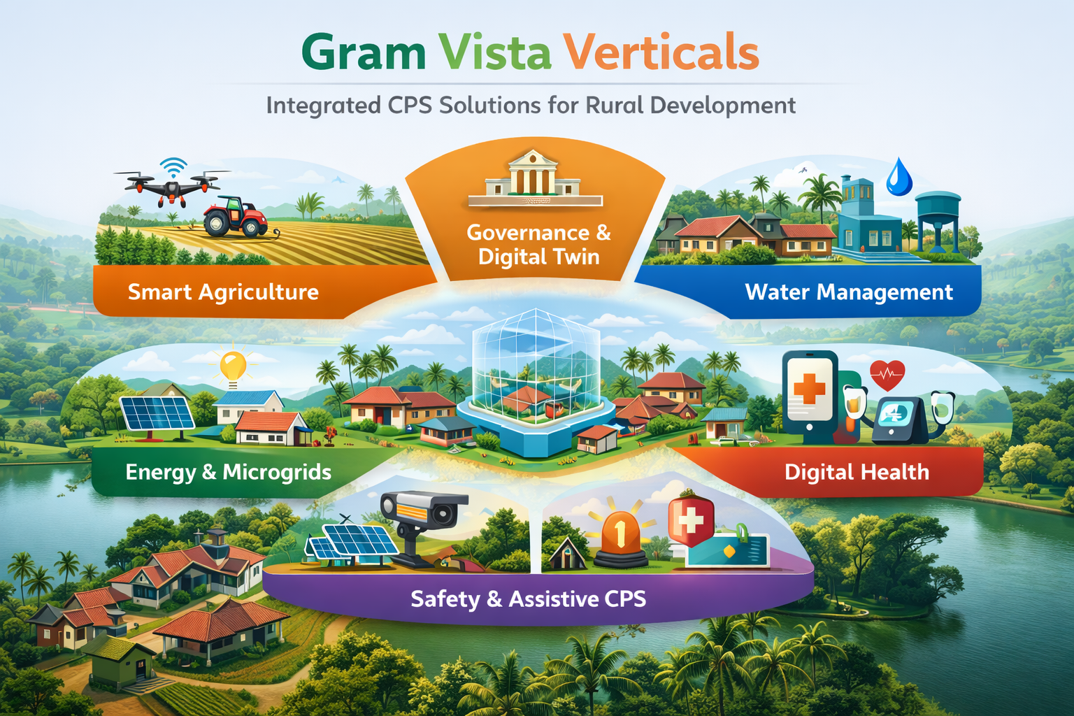 An inclusive village-scale Cyber-Physical Systems (CPS) initiative integrating water, energy, agriculture, healthcare, safety, and governance into a unified digital ecosystem.